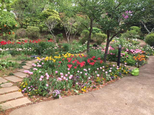チュウリップは今花盛り Tweet Pocket 昨年1000個の球根を自宅の庭に植えたのが 今さいています。 花の担当は妻ですが 実は当時妻が骨折をしていて近くのおばさん二人に お願いして全部やってもらったものです。 私が現場にいて妻の要望を聞いて そのおばさんたちに指示し、手探りで何とか完了しました。 ですから、咲くまでは上手くいったのかどうか 皆目わからなかったのですが 現実に咲いてみると 素晴らしいの一語で 先日のそのおばさんたちを呼んで 一緒にその素晴らしさを堪能しました。 Tweet Pocket